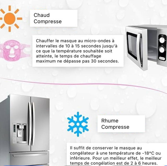 Offrez à votre peau une vague de fraîcheur ou une douce chaleur grâce à ce masque en gel multi-actions, conçu pour épouser parfaitement les courbes du visage.